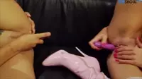 The video begins with the blonde and brunette passionately making out on a comfortable couch, their lips meeting in a fierce clash of desire.Their tongues explore each other's mouths hungrily, leaving no corner of their lush lips unexplored.Their hands roam freely over each other's bodies, groping and pinching sensitive nipples, caressing supple behinds, and sliding eagerly towards dampening panties.The intensity of their embrace is palpable it is clear that both women are famished for more than just a simple kiss.They break away from the kiss, panting heavily as they gaze deeply into one another's eyes.Their breathing labored, the brunette takes a step back and removes her top, unveiling full, plump breasts with puffy nipples, beckoning to be touched and sucked upon.The blonde follows suit, peeling away her own clothing in a sensual dance of desire, revealing an equally captivating set of curves, tanned from long days in the sun.Their passionate embrace continues as they explore each other's bodies further, their hands roaming across sweat-dampened skin and exploring the contours of lush, womanly shapes.The brunette takes one nipple between her lips, sucking and flicking it with her tongue before trailing her hand down to the blonde's swollen clit, a moan escaping her throat as she revels in the taste of another's desire.As their arousal grows, so does their need for more intimacy.The blonde climbs atop her lover, straddling her waist and kissing her passionately while reaching between them to stimulate both their clits in sync, creating an even more intense pleasure.Their bodies press against each other, the friction only adding fuel to their burning passion.The brunette then pulls back, eager to return the favor, as she positions herself behind the blonde.Her tongue snakes out, seeking the blonde's opening and delving inside, tasting her lover deeply as she finger fucks her from behind, creating an intoxicating blend of sensations for both women.The room fills with their gasping breaths and moans of ecstasy as they bring each other to unparalleled heights of pleasure.Finally, after what feels like an eternity of desire and hunger, the brunette pulls away just enough to look into her lover's eyes.The connection is electric, and their shared orgasm threatens to pull them under its rippling waves.The blonde wraps herself around the brunette's body, feeling a sense of completion as she comes undone in their passionate embrace, their lips meeting once more in a tender kiss that seals their passion-fueled union.In the end, they lay entwined in each other's arms, sweat glistening on their brows and flushed cheeks betraying the intensity of their passion.As they catch their breath, they can't help but share a knowing grin before diving back into the erotic dance that will undoubtedly continue well into the night.