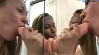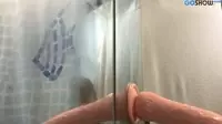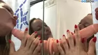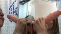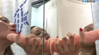 The video begins with a stunning woman entering the luxurious bathroom, her heart racing with anticipation.The soft lighting and dimmed bulbs create an intimate setting, highlighting the beads of water that trickle down from the showerhead above them.Her curves are accentuated by the sheer fabric of her bathrobe, teasing whats underneath.She can feel the erotic tension in the air as she undoes the ties and lets it fall to the floor, revealing her flawless body.Meanwhile, a man stands nearby with a mischievous grin.He hands her a sleek, black dildo, his eyes locked onto hers in a thrilling game of seduction.With bated breath, she takes the dildo, feeling the anticipation build as she imagines it splashing pleasures under the warm shower spray.The womans hand slips into the rubbery toy, her grip tightening as the man stands behind her, offering support.Their bodies press together and the room is filled with a sensual atmosphere.Her free hand finds his and she grips it firmly, pulling him close for an intimate embrace.Their lips meet, their tongues swirling in a dance of passion, as they explore every corner of one anothers mouth.The man gently nudges her head downwards, prompting the woman to oblige with a sly smile.His cock grows harder by the second, aching for attention.The woman eagerly takes it into her mouth and starts sucking, her lips forming an erotic O shape around his shaft as she sucks him off, loving the taste of him on her tongue.Their eyes lock in a trancelike state, and she can sense her own wetness seeping through her underwear from watching him masturbate with the dildo, feeling each splash and thrust under the shower spray.The mans hands travel over her curves, his fingers gliding effortlessly on the slick skin of her back and ass as he begins to finger her with urgency.The woman moans louder around his cock, the water spraying onto them both as she loses herself in the ecstasy of this fantasy.Her free hand strokes the mans shaft while her mouth remains locked onto it, swallowing everything he has to offer.The shower fills the air with steam and eroticism, becoming a kaleidoscope of sensations that echo their desires.As the woman continues sucking and licking his cock, she pretends to imagine the dildo splashing pleasures under the shower spray in every direction while the man watches in amazement at her ability to bring him such joy.The room is filled with wet noises and moans, their bodies drenched not only from the shower but also from the passion that courses through them like wildfire.The water cascades down their bodies, providing a natural lubrication as they continue to fuck one another in a watery world of bliss.Their hands explore every curve, their mouths never straying far from each others lips or skin, as the video culminates in a mindblowing climax for them both.